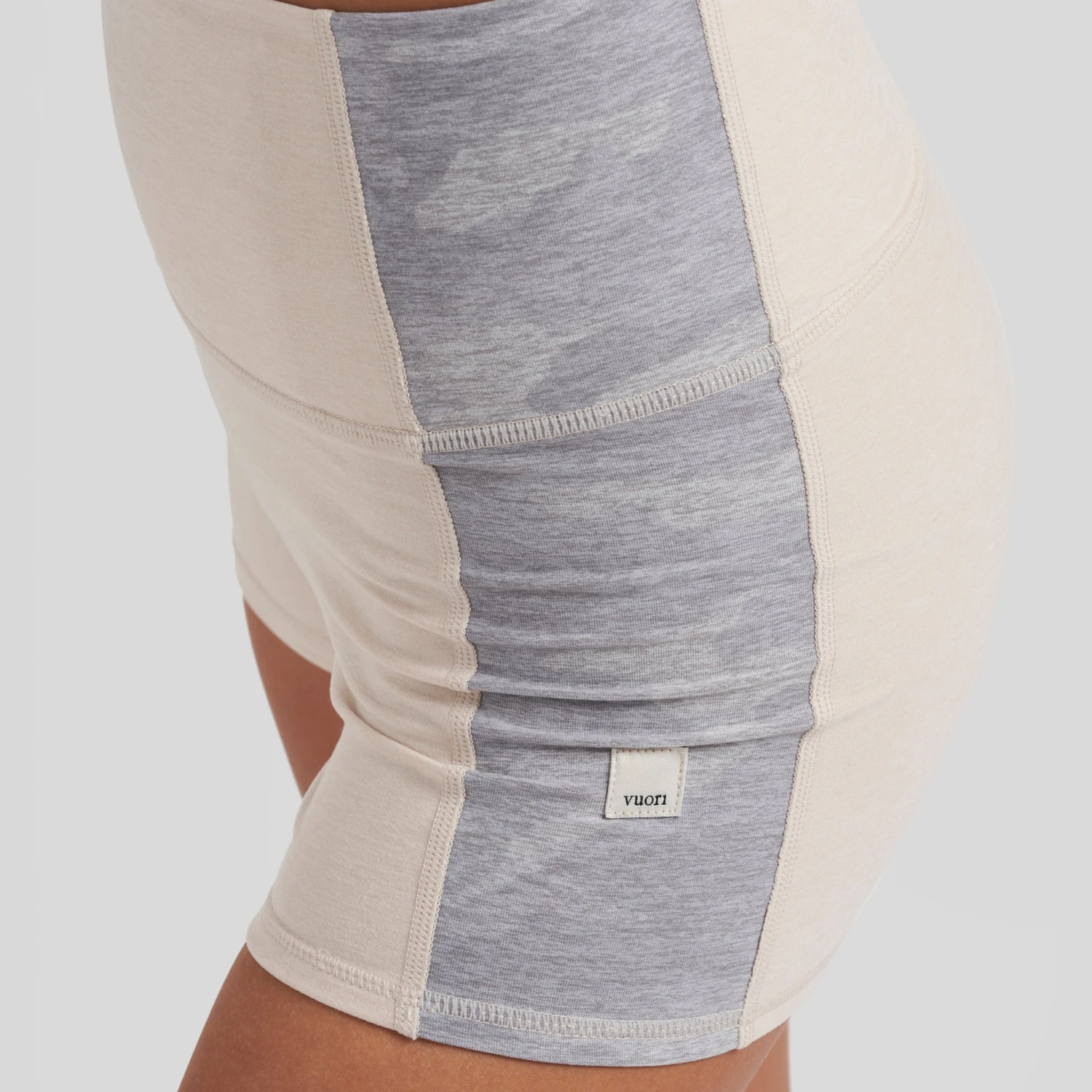 A short that elevates every move. Made with our performance stretch knit, these have all the details you need and more: moisture-wicking fabric, a hidden pocket inside the waistband, a high-rise for a stay-put fit, and camo colorblock side panels for an elongated effect. Top it off with our matching bra for peak comfort and style.