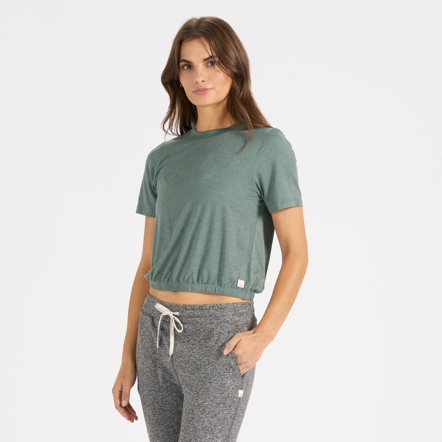 Not quite cropped with a bottom elastic hem for a hugged silhouette, meet the Balance Tee. Performance stretch moss jersey with our trademark functional details, the Balance Tee is versatile enough to wear in and out of the gym.