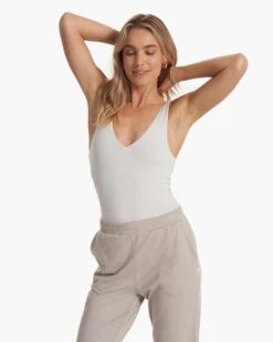 Ultra-soft and oh-so-wearable, the Halo Bodysuit has a clean plunge neckline, lightly supportive built-in shelf bra and a no-show thong cut. Whether you’re heading to yoga or catching your next flight, this layer is made with our mostly recycled DreamKnit™ premium stretch fabric that wicks away moisture, moves with you and looks good while doing it. Snap closure makes it effortlessly wearable.