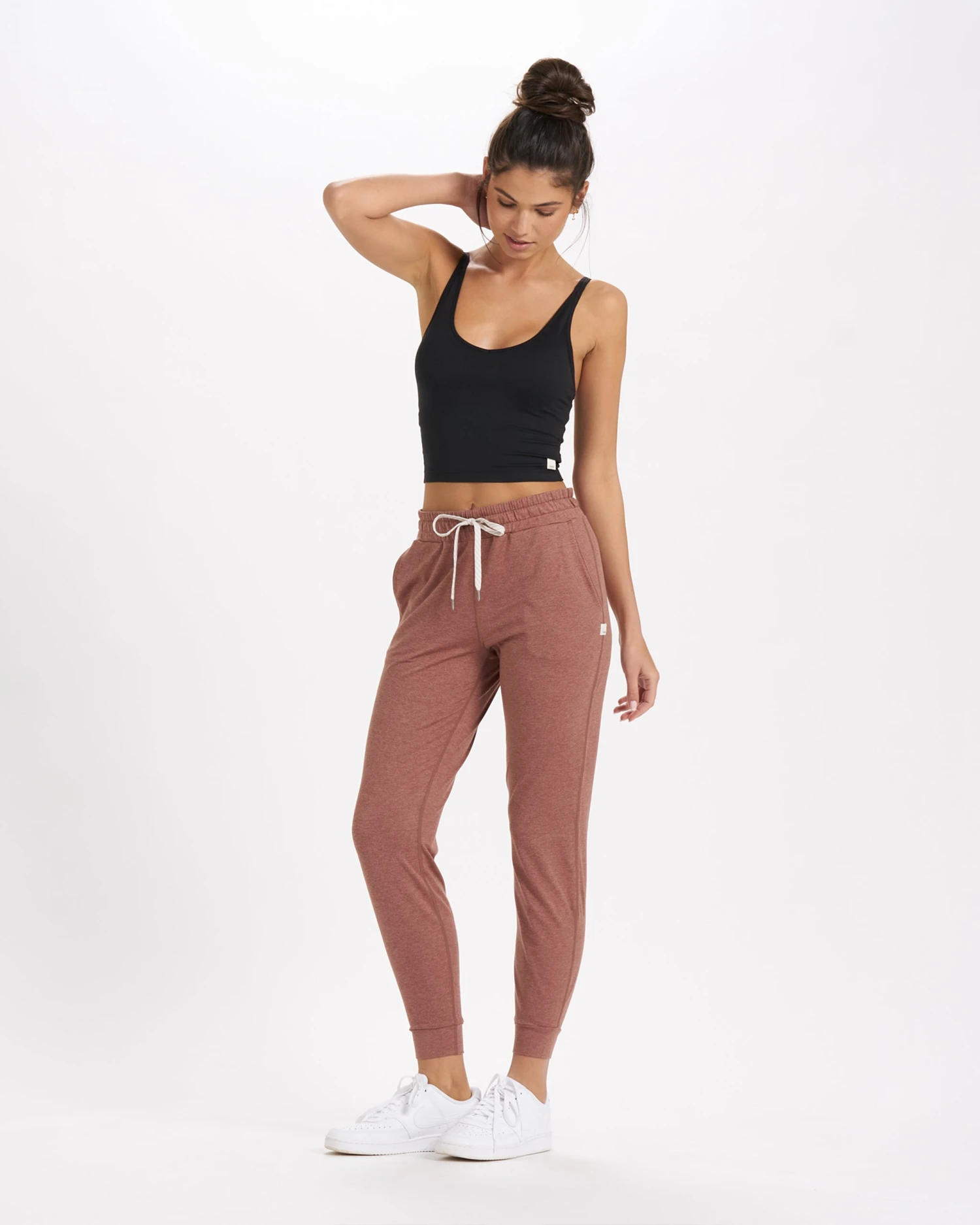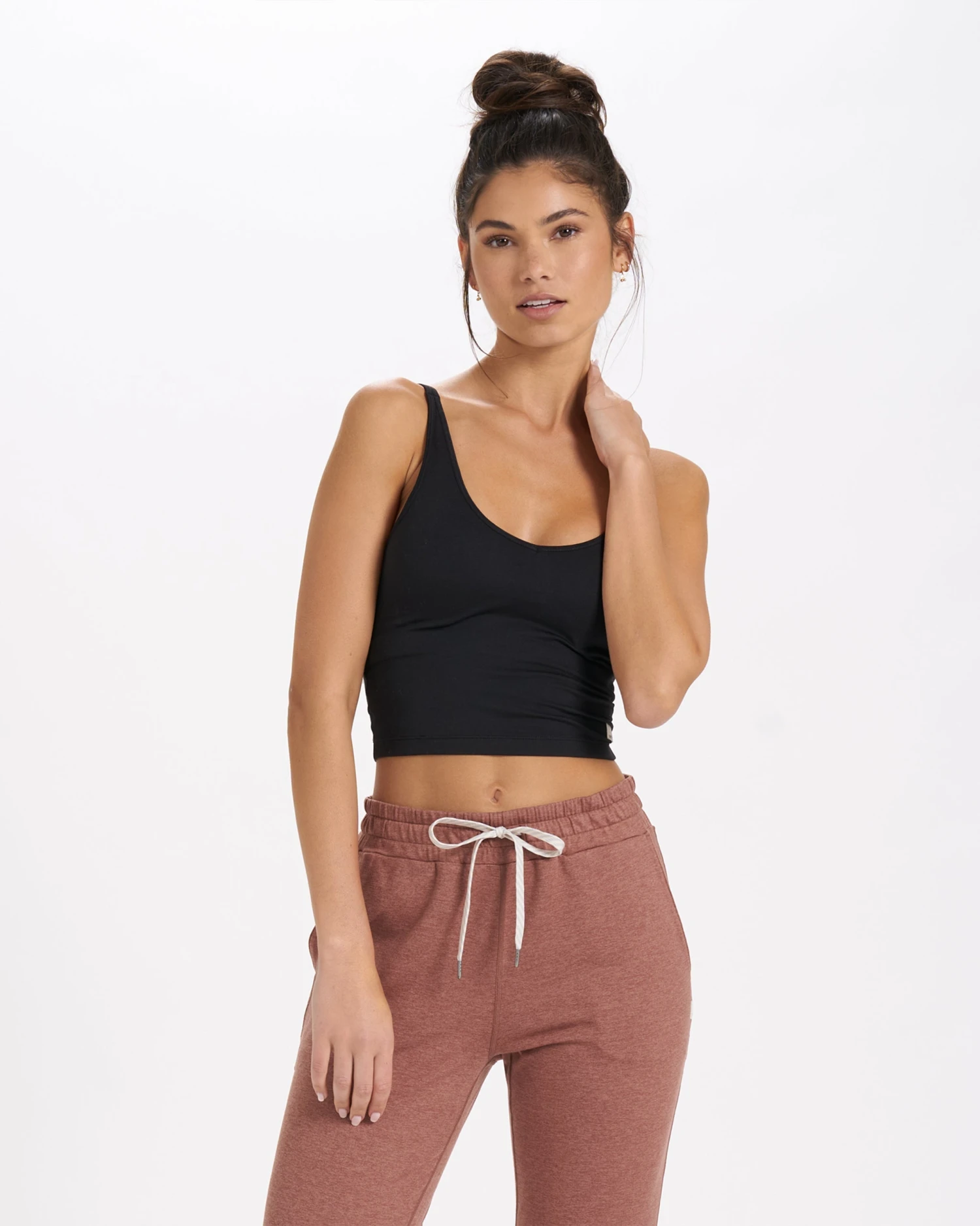 Match this flattering v-necked crop top to joggers and to complete your full DreamKnitâ„¢ look. This crop is made of all-performance stretch jersey in the softest fabric ever and features double strap details and a light-support built-in bra with removable cups in a honeycomb mesh lining. Great for yoga and travel.