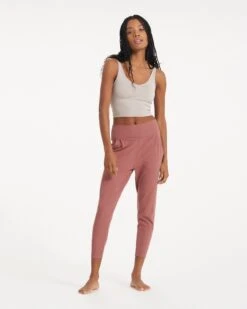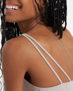 Match this flattering v-necked crop top to joggers and to complete your full DreamKnitâ„¢ look. This crop is made of all-performance stretch jersey in the softest fabric ever and features double strap details and a light-support built-in bra with removable cups in a honeycomb mesh lining. Great for yoga and travel.