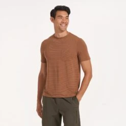A performance knit striped tee is always an ideal go-to. Our Linear Tee brings the comfort, with 4-way stretch, moisture wicking, odor protection, and a convenient front pocket, making it great for yoga, training, and running.
