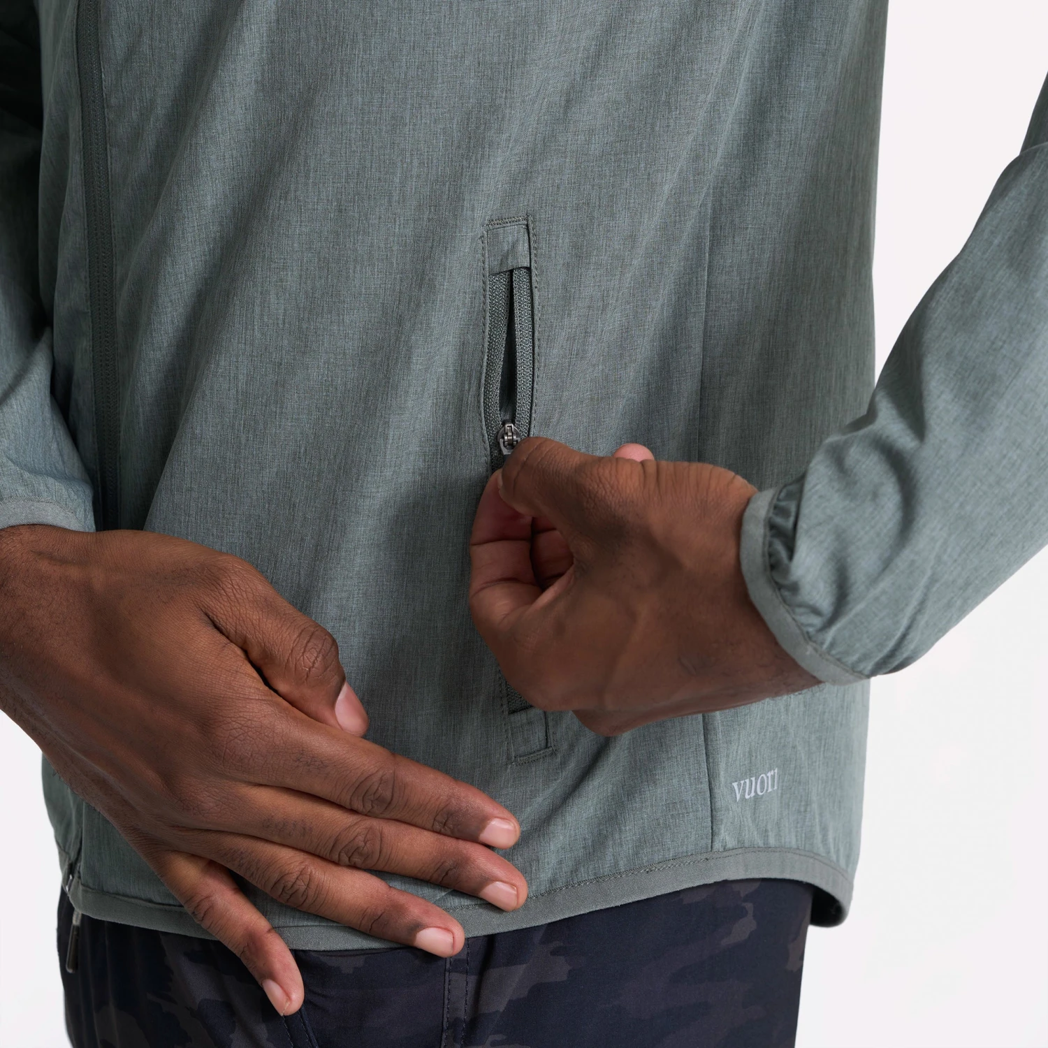 Take on the great outdoors in our men’s hooded Outdoor Trainer Shell jacket. The four-way stretch lightweight performance material is anti-odor and has multiple zip pockets and a reflective logo so you’re covered on all your outside adventures.