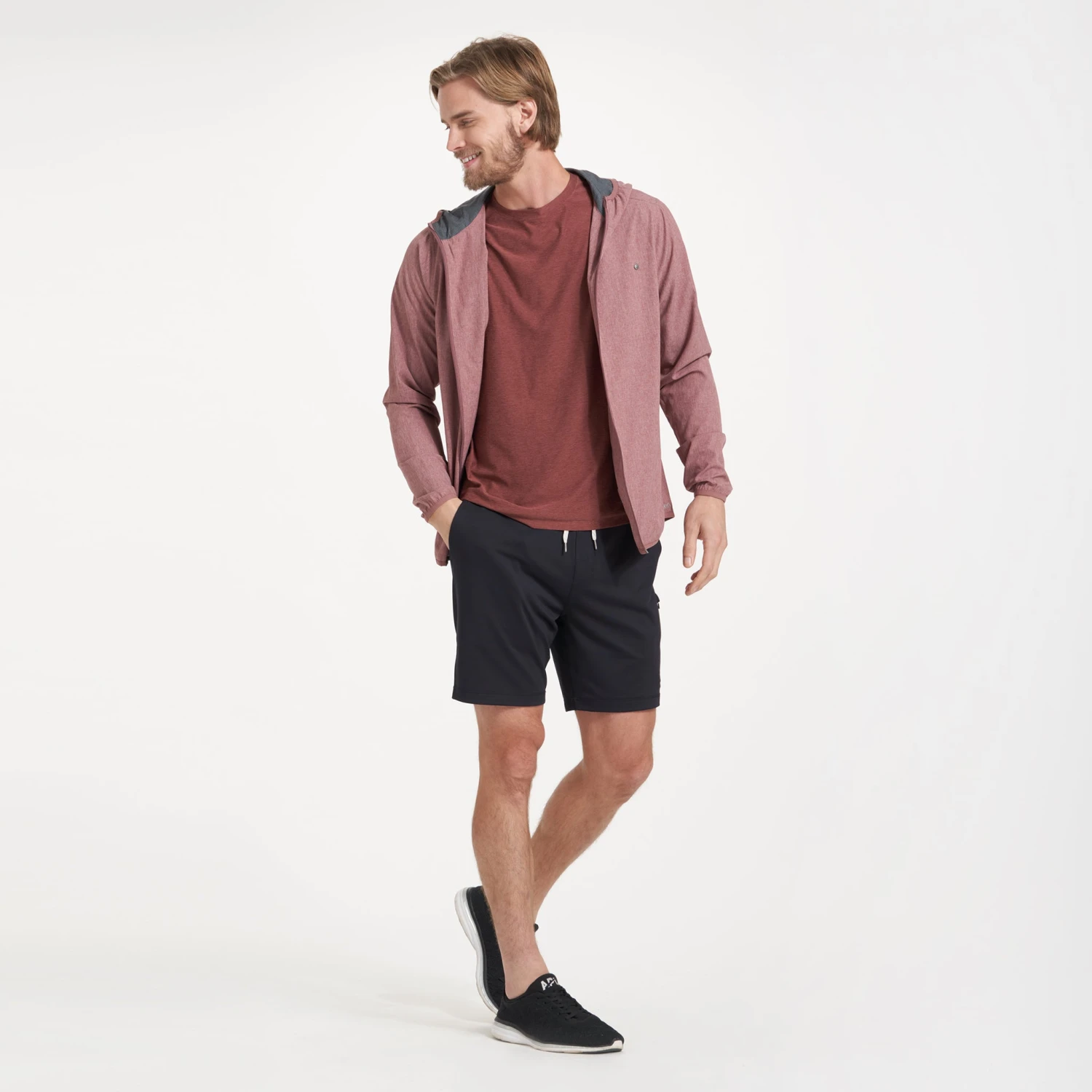 Take on the great outdoors in our men’s hooded Outdoor Trainer Shell jacket. The four-way stretch lightweight performance material is anti-odor and has multiple zip pockets and a reflective logo so you’re covered on all your outside adventures.