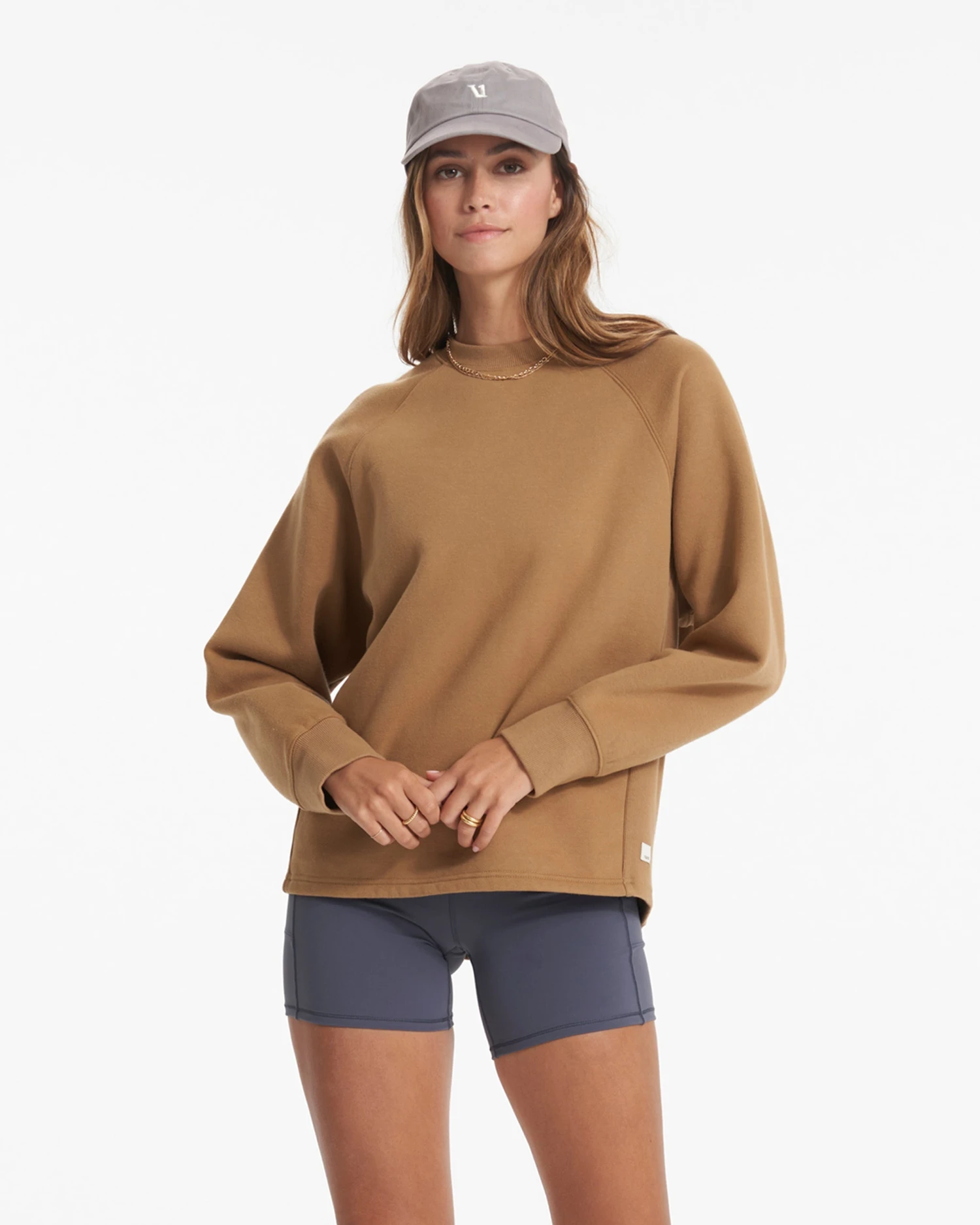 Post-workout perfection. This is a roomy sweatshirt designed with a longer hemline that slips over your bike shorts and leggings with ease. Made from organic brushed French terry that’s been treated with a bio-wash, it has a supremely soft feel to help you rest, relax, and Restore.