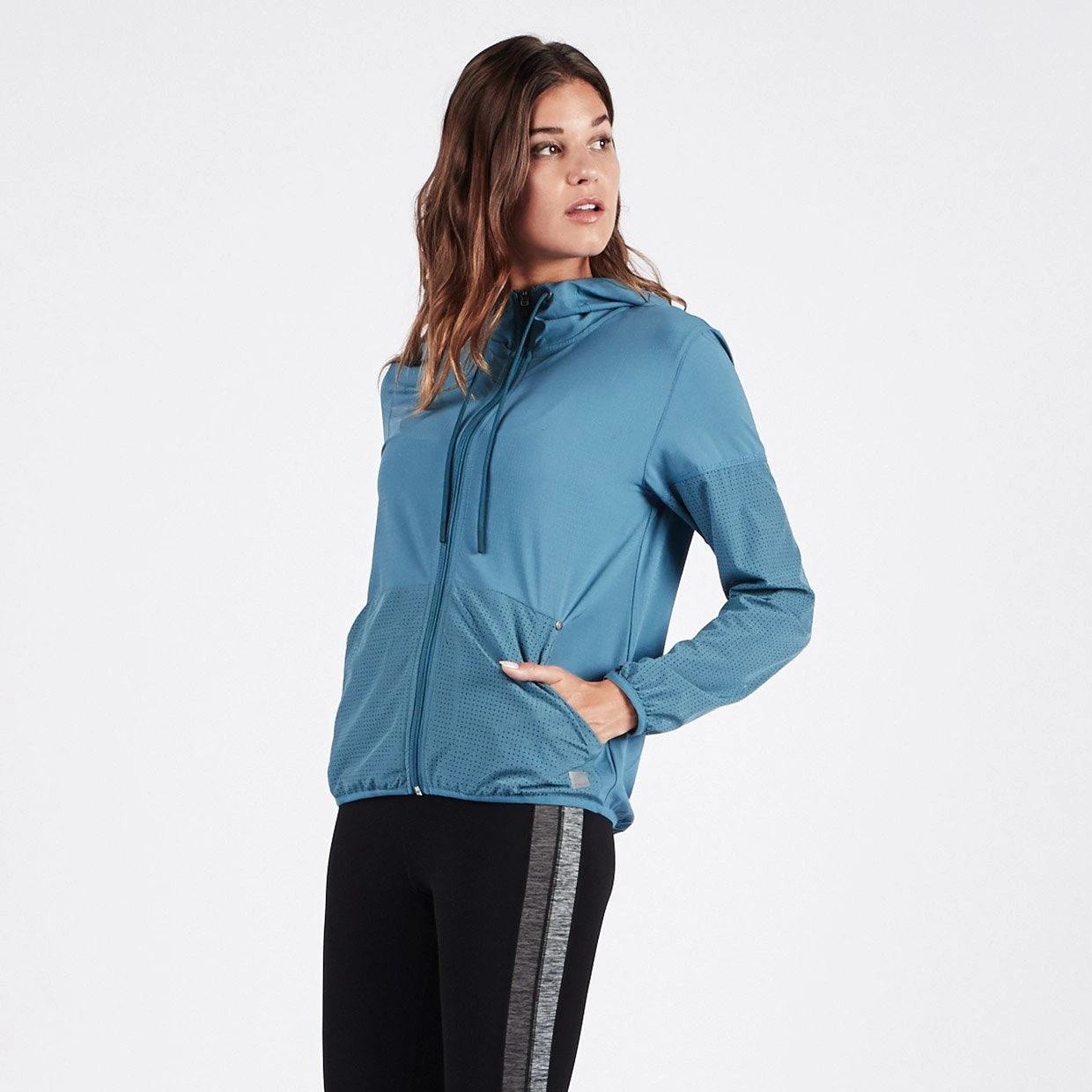 Here to step up your outdoor layering game. Throw on top of your activewear or toss it on for travel, the Stonesteps Windbreaker is a hooded shell jacket created with perforated sleeves, kangaroo pocket and reflective logos to keep you covered. Great for running, training and traveling.