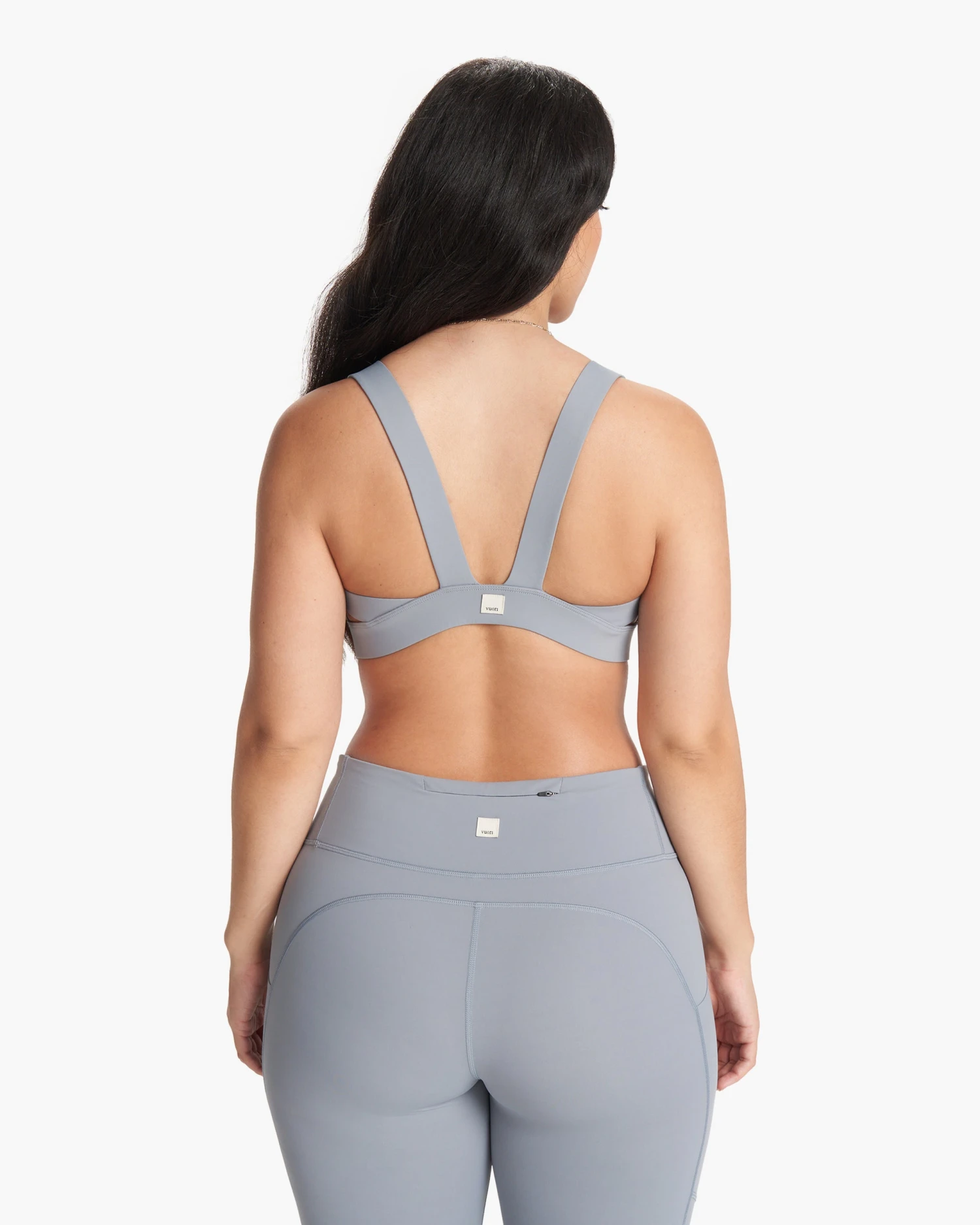 An active bra that is both supportive and beautiful. This performance stretch knit sports bra is elevated by a split-strap detail with an open back. Packed with innovations, it provides high-support while wicking away moisture.