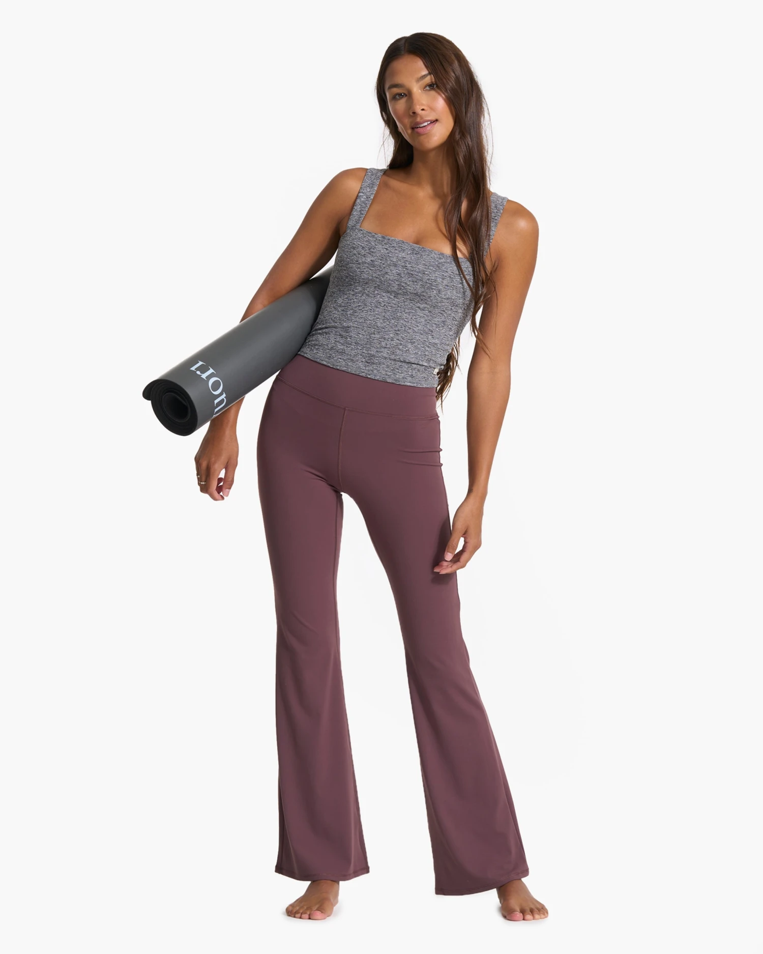 Finished with flair. We’ve taken our favorite Studio Leggings and finessed them with a new flair leg. Keeping the essential high rise, these are made with our moisture-wicking BreatheInterlock™ performance stretch knit fabric.