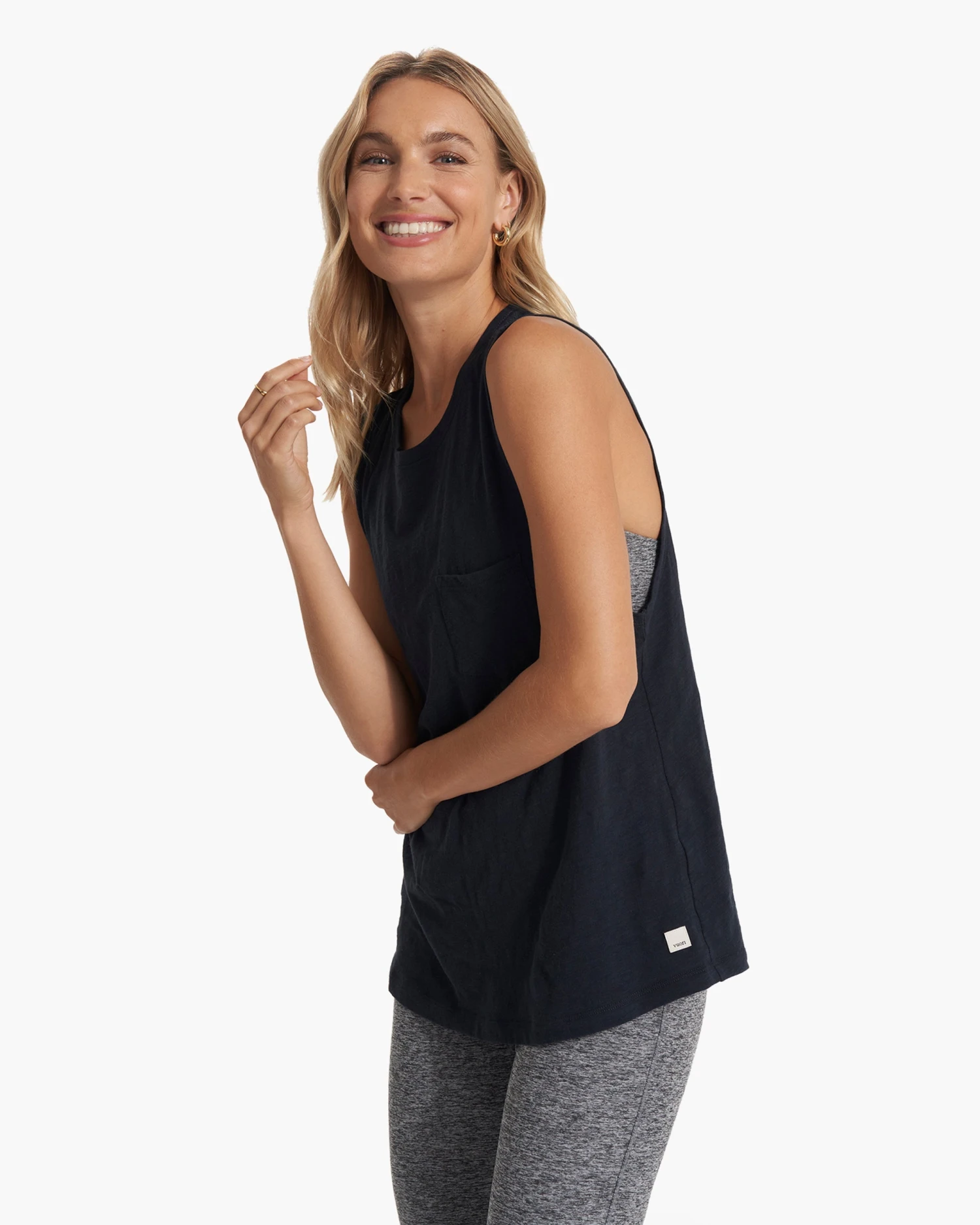 Work, play or lounge in this sporty silhouette made from our super soft pima cotton slub for a subtly textured drape. Finessed with a front chest pocket and cut for a flattering, no-cling finish, you’ll wear this tank sunrise to sunset.
