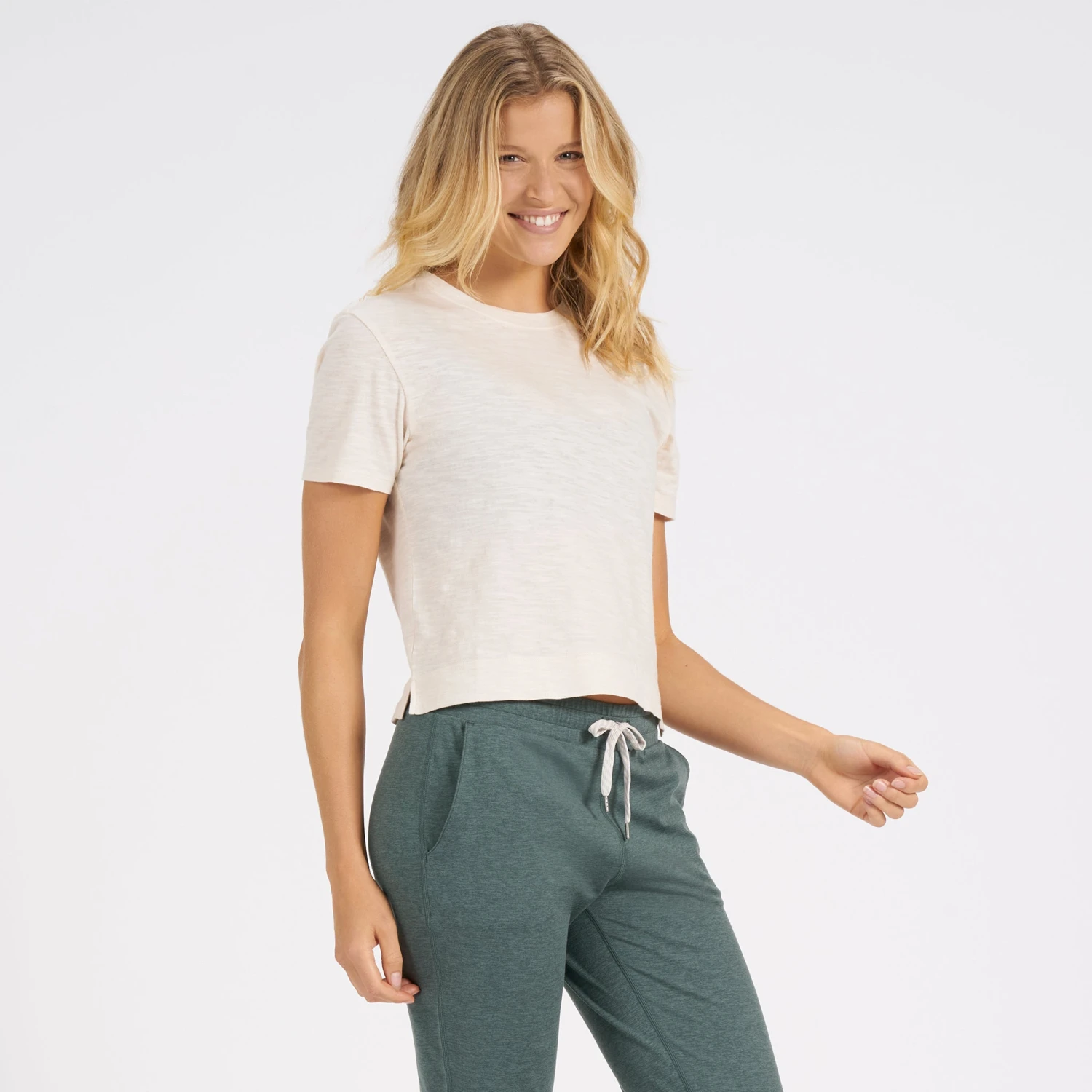 Constructed in our softest, 100% pima cotton slub and cut for a flattering fit, this breathable basic defines California comfort.